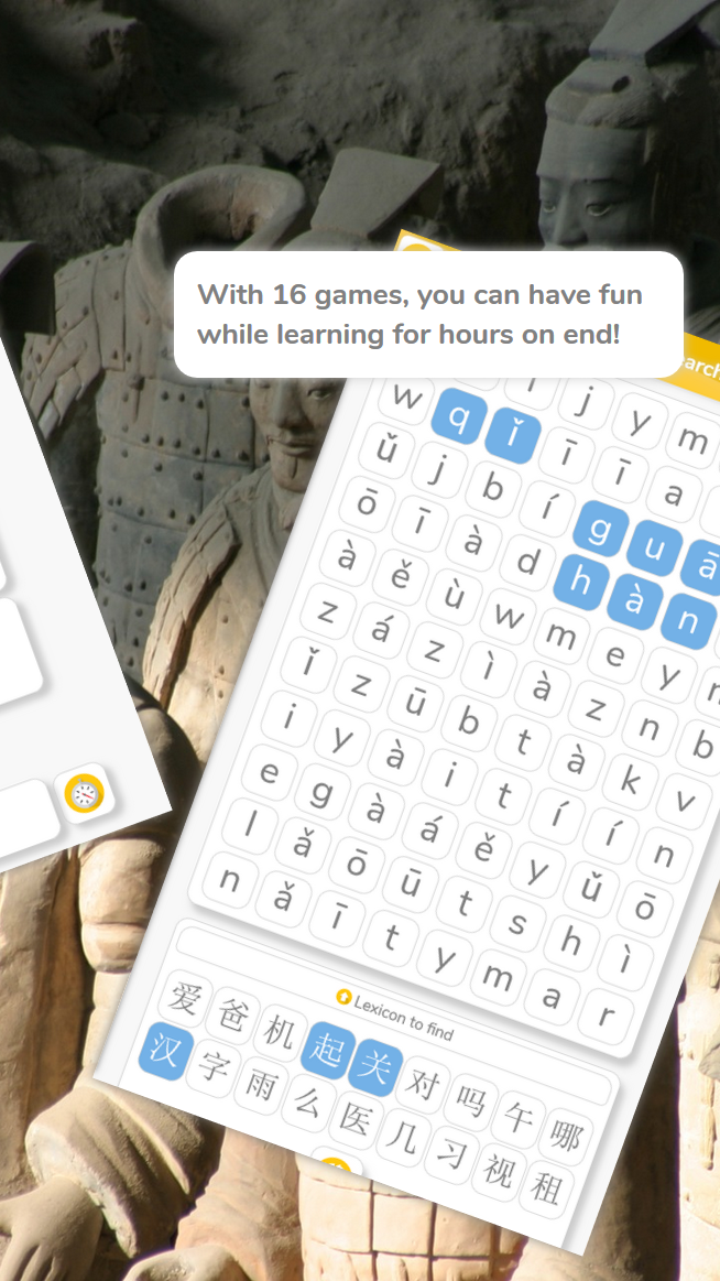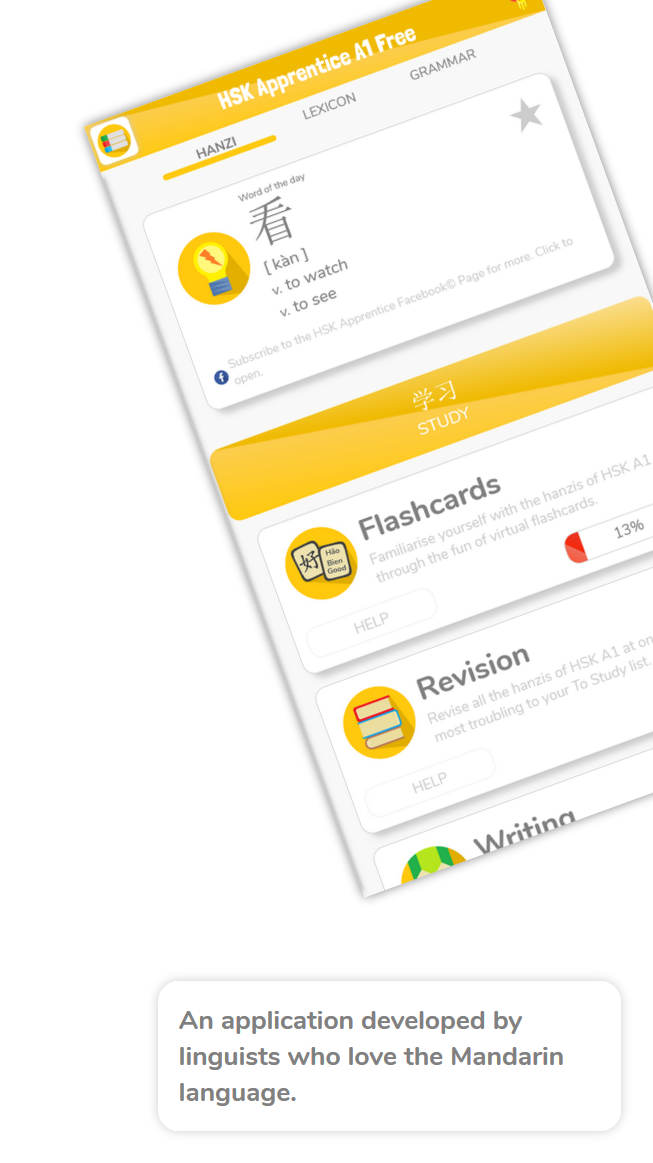 Whether you're a sinophile (lover of all things Chinese), interested in doing business in the world's number one super power, or learning Mandarin for business in your native country, check out HSK Apprentice. With 16 games covering writing, pronunciation, translation and grammar employ, you'll be able to ace the test all while having fun. Developed by linguists and Mandarin speakers, we guarantee the most time efficient Mandarin apprenticeship experience.